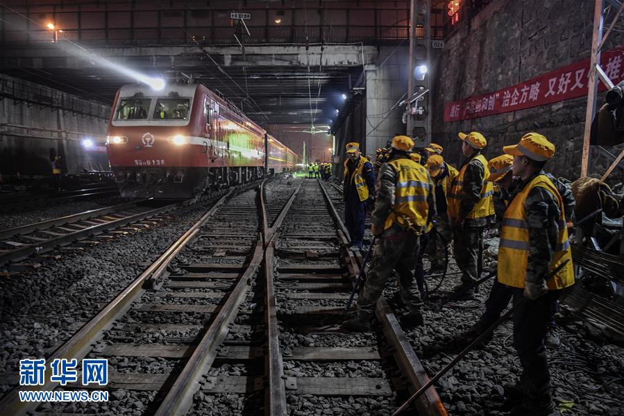 1月15日凌晨,中鐵十一局施工人員在西安站改現(xiàn)場(chǎng)等待列車通過,準(zhǔn)備進(jìn)行施工。新華社記者陶明攝