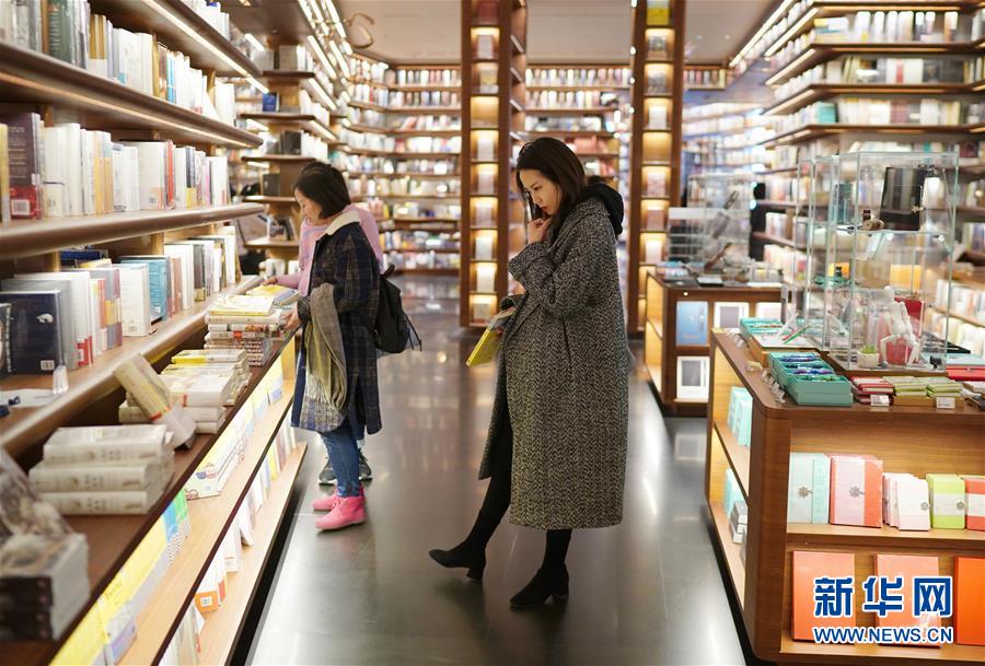 1月14日,讀者光顧西安高新區(qū)一家大型書店。