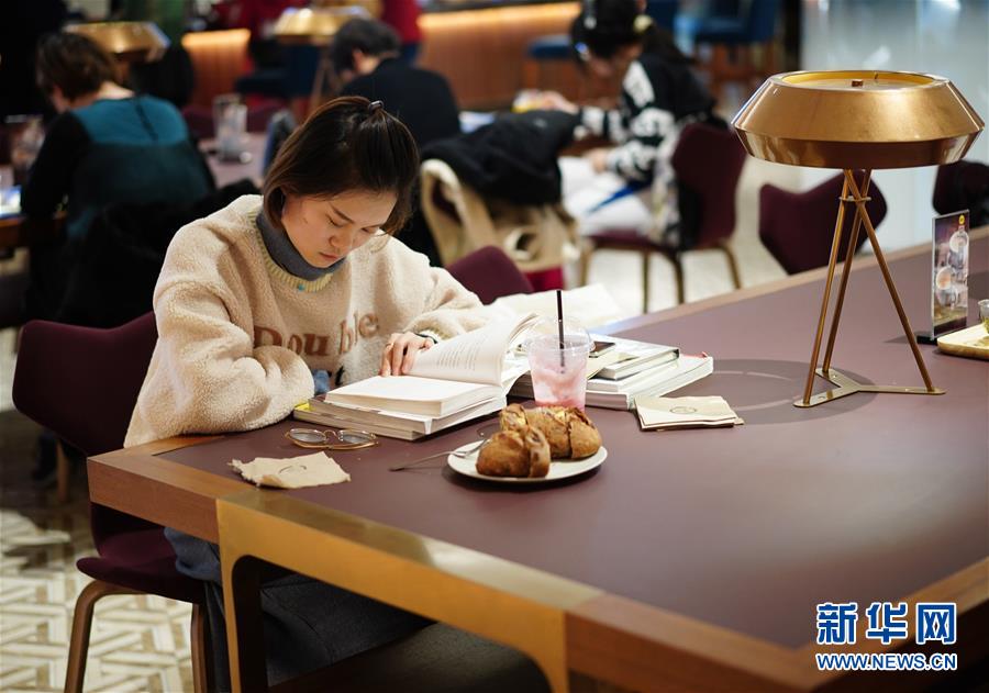 1月14日,讀者在西安高新區(qū)一家大型書店內(nèi)讀書休閑。