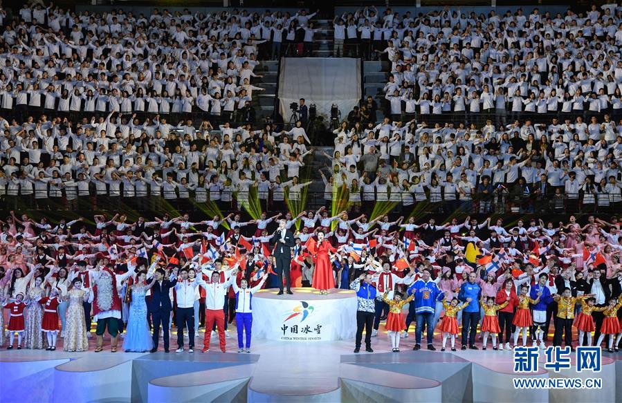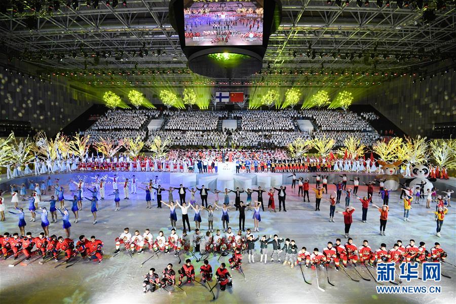 1月15日,演員在開幕式上表演。 當(dāng)日,“2019中芬冬季運動年”開幕式在北京首鋼冰球館舉行。 新華社記者申宏攝