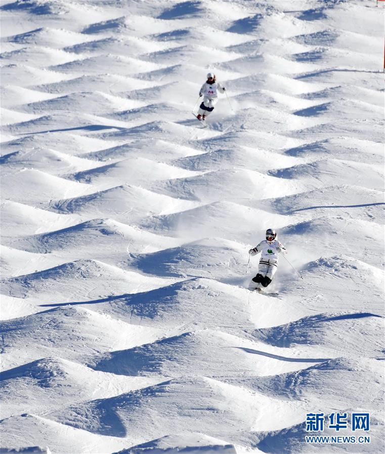 這是運動員在張家口市崇禮區(qū)太舞滑雪場參加自由式滑雪雪上技巧比賽(2018年12月14日攝)。 新華社記者楊世堯攝