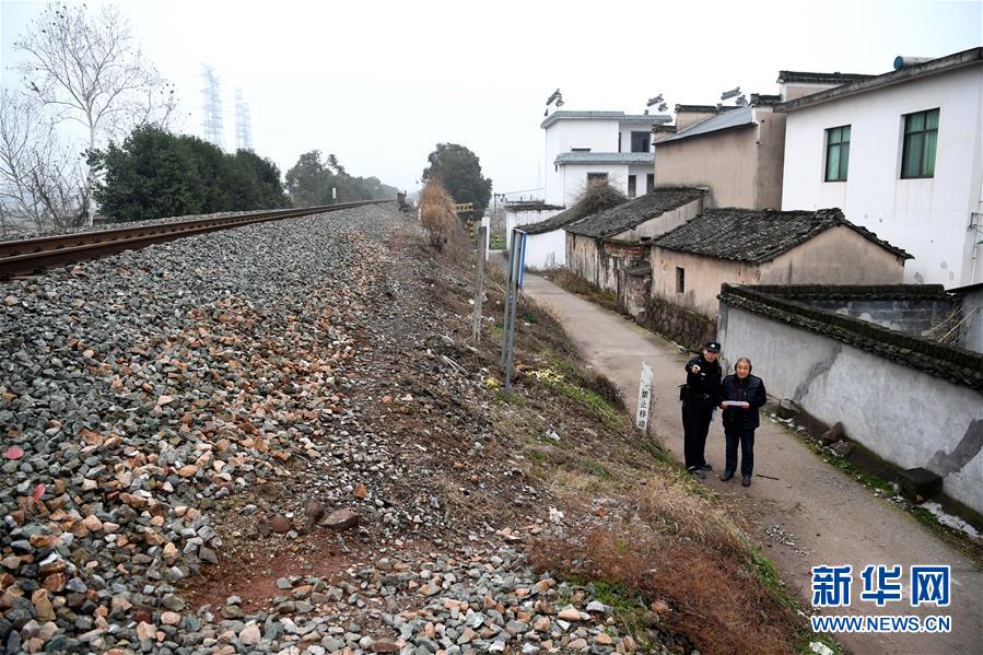 1月16日,汪茂才向鐵路沿線(xiàn)村民宣傳鐵路安全知識(shí)。 今年52歲的汪茂才是合肥鐵路公安處黃山站派出所歙縣警務(wù)室的一名線(xiàn)路民警,他所在的警務(wù)室負(fù)責(zé)皖南山區(qū)皖贛鐵路線(xiàn)約80公里范圍內(nèi)的線(xiàn)路安全。從警30年來(lái),線(xiàn)路巡查、鐵路安全知識(shí)宣傳等是汪茂才的日常工作。多年來(lái)的徒步巡線(xiàn),讓汪茂才練就了一雙快腿,十公里的路,汪茂才兩個(gè)小時(shí)就能走完。 汪茂才負(fù)責(zé)的鐵路沿線(xiàn)周邊村莊較多,很多房子都是沿鐵路線(xiàn)而建,有些村民為了圖方便,違規(guī)穿越鐵路線(xiàn)。加強(qiáng)對(duì)鐵路沿線(xiàn)居民的安全宣傳教育,成為汪茂才的一項(xiàng)重要工作,沿線(xiàn)村民的安全意識(shí)也越來(lái)越高。 對(duì)汪茂才這樣的線(xiàn)路民警來(lái)說(shuō),大多數(shù)時(shí)候都是“獨(dú)行俠”,“當(dāng)線(xiàn)路民警就要耐得住寂寞,守得住孤獨(dú),與大山為伴,與線(xiàn)路為友,盡己所能,為鐵路安全運(yùn)行保駕護(hù)航?!蓖裘耪f(shuō)。 新華社記者劉軍喜攝