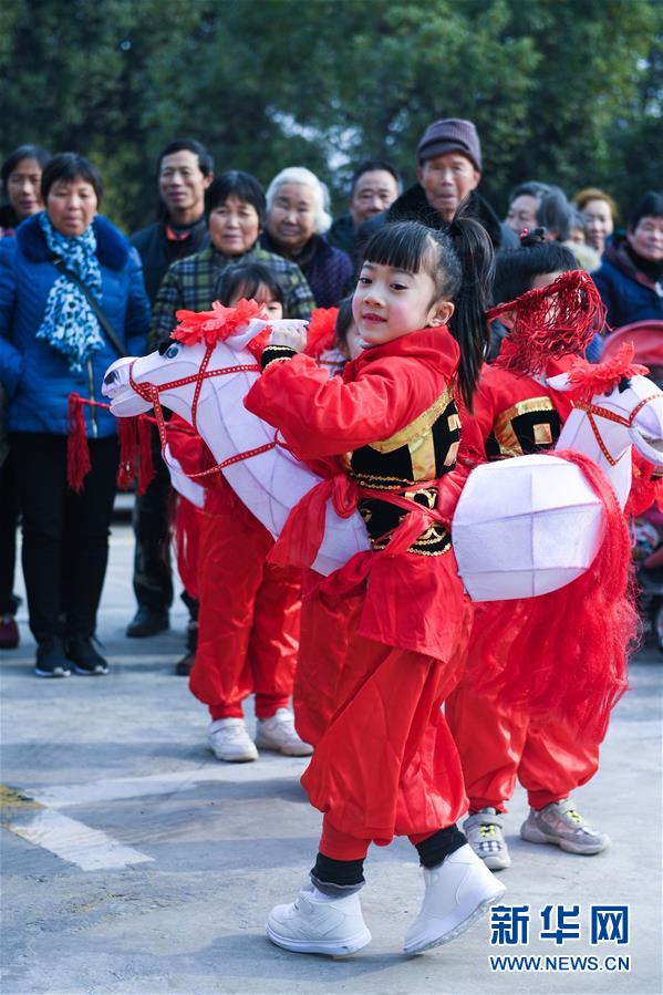 1月16日,孩子們?yōu)樾绿链宕迕癖硌輦鹘y(tǒng)非遺項(xiàng)目——下箬馬燈。下箬馬燈是發(fā)源于長興縣的民間舞蹈,距今已有1000多年歷史。 臨近春節(jié),浙江省長興縣開發(fā)區(qū)中心幼兒園的老師和孩子們來到長興縣太湖街道下屬的新塘村,為村民表演文藝節(jié)目,用喜慶的傳統(tǒng)舞蹈營造節(jié)日氣氛。另外孩子們還用紙盒、瓶子、彩色包裝紙等廢舊物品制作了環(huán)?;?,送給村民,倡導(dǎo)低碳環(huán)保的節(jié)日新風(fēng)。 新華社記者 徐昱 攝