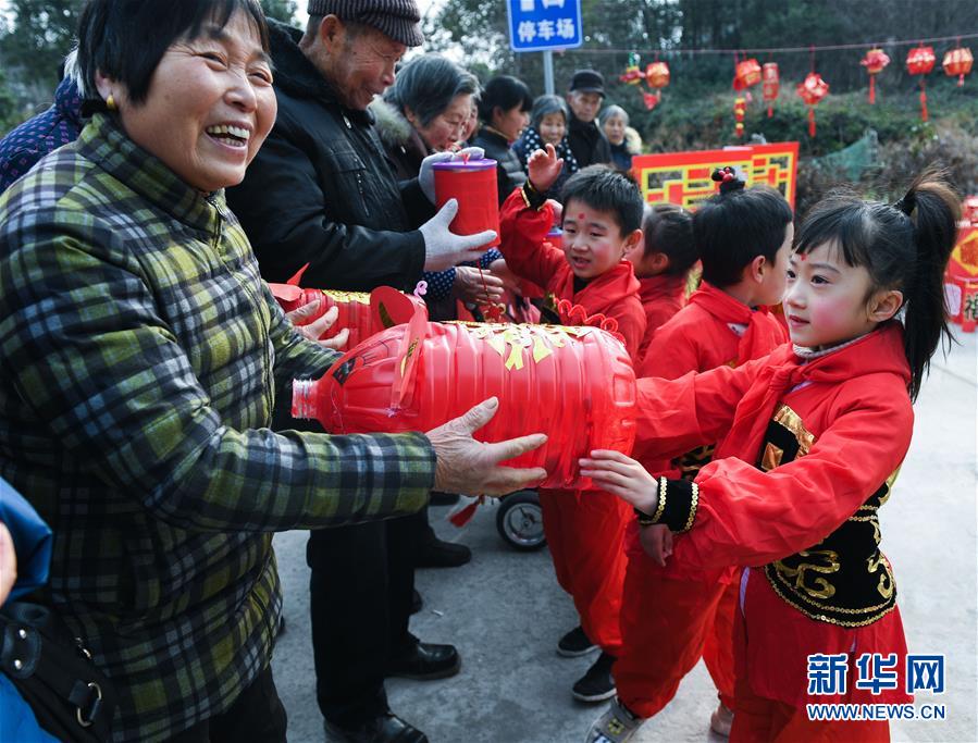 1月16日,孩子們把用廢舊物品制作的節(jié)日花燈送給村民。 臨近春節(jié),浙江省長(zhǎng)興縣開發(fā)區(qū)中心幼兒園的老師和孩子們來(lái)到長(zhǎng)興縣太湖街道下屬的新塘村,為村民表演文藝節(jié)目,用喜慶的傳統(tǒng)舞蹈營(yíng)造節(jié)日氣氛。另外孩子們還用紙盒、瓶子、彩色包裝紙等廢舊物品制作了環(huán)保花燈,送給村民,倡導(dǎo)低碳環(huán)保的節(jié)日新風(fēng)。 新華社記者 徐昱 攝