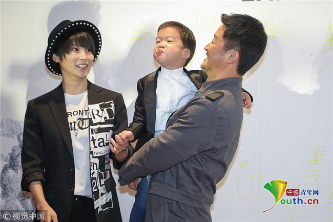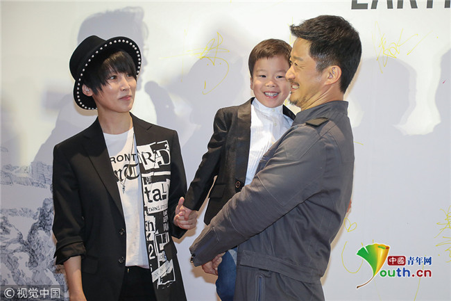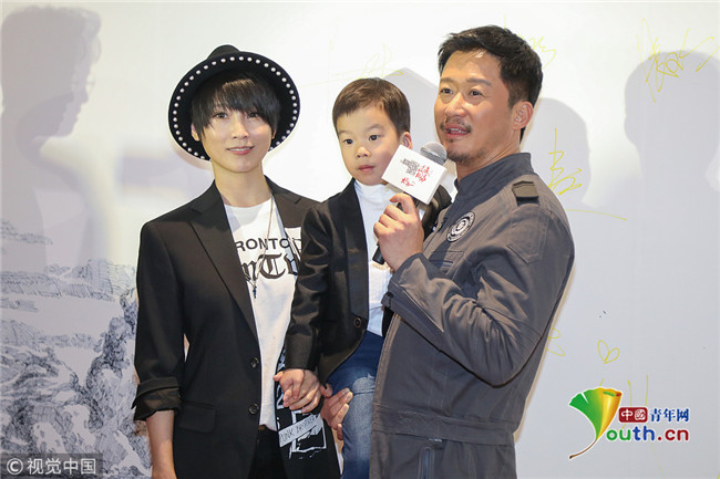 2019年1月28日,北京,電影《流浪地球》發(fā)布會后舉行首映禮。導(dǎo)演郭帆、主演吳京、屈楚蕭、李光潔等人出席,謝楠更是抱著兒子與吳京相聚助陣吳京新電影。