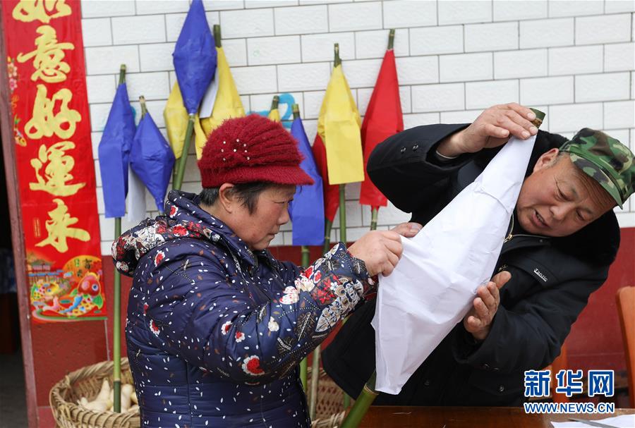 2月18日,在四川省南充市嘉陵區(qū)金寶鎮(zhèn)和祥社區(qū),65歲的李樹會(huì)(右)和老伴制作“蠐蟆燈”。 當(dāng)日是農(nóng)歷正月十四,夜幕降臨后,川渝等地?cái)?shù)萬名群眾在四川省南充市嘉陵區(qū)金寶鎮(zhèn)匯聚,點(diǎn)亮“蠐蟆燈”,敲著鑼鼓唱著歌謠,將“蠐蟆”送到幾公里外的田邊或者河邊燒掉,祈福健康平安。星星點(diǎn)點(diǎn)的燈光在鄉(xiāng)間小路閃爍移動(dòng),場(chǎng)面壯觀熱烈。 “送蠐蟆”祈福這一習(xí)俗源于清朝,歷經(jīng)演變成為川東北地區(qū)一個(gè)古老而神秘的地方民俗節(jié)日。 新華社記者 江宏景 攝
