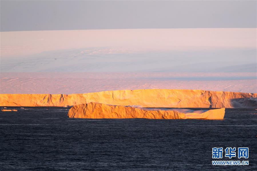 這是中山站附近的南極冰蓋邊緣及斷落入海的冰山(2月13日攝)。新華社記者 劉詩平 攝