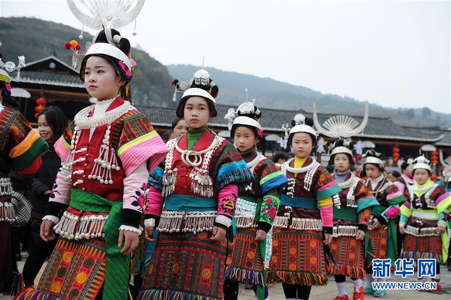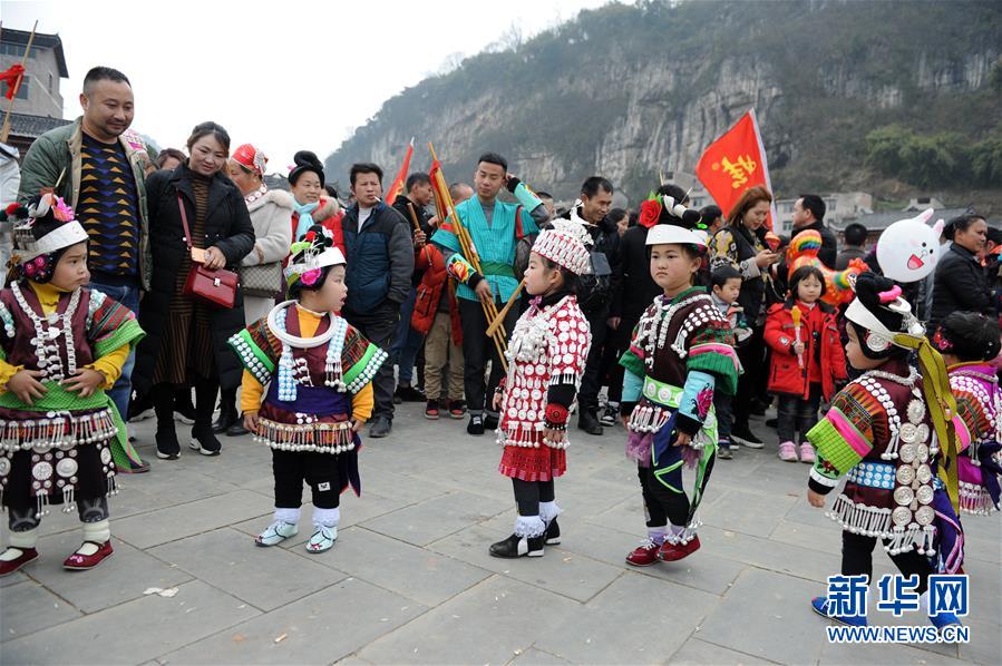 2月24日,在貴州省凱里市舟溪鎮(zhèn),苗族小姑娘身著盛裝跳蘆笙舞。 當日,在貴州省黔東南苗族侗族自治州凱里市舟溪鎮(zhèn),來自各地的苗族群眾身著節(jié)日盛裝,歡聚在古老的“甘囊香”蘆笙堂,男子吹奏起蘆笙,姑娘和孩子們跳起蘆笙舞,歡度新春,祈求風調(diào)雨順、五谷豐登,青年男女也借此良日尋覓意中人。 “甘囊香”是苗語音譯,意思為“河流的下游,神仙匯聚的地方”。“甘囊香”蘆笙會是貴州規(guī)模最大、最古樸的苗族蘆笙會之一。 新華社記者楊文斌攝