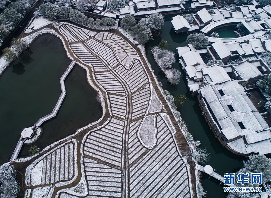 12月9日,空中俯瞰被白雪覆蓋的烏鎮(zhèn)景區(qū)(無人機(jī)拍攝)。 受冷空氣影響,浙江省桐鄉(xiāng)市迎來大范圍降雪,千年古鎮(zhèn)烏鎮(zhèn)被厚厚的白雪覆蓋。小橋流水、白墻黑瓦的江南水鄉(xiāng)古鎮(zhèn),呈現(xiàn)出冬日雪鄉(xiāng)的獨(dú)特韻味,吸引各地游客前來觀賞。 新華社記者 徐昱 攝