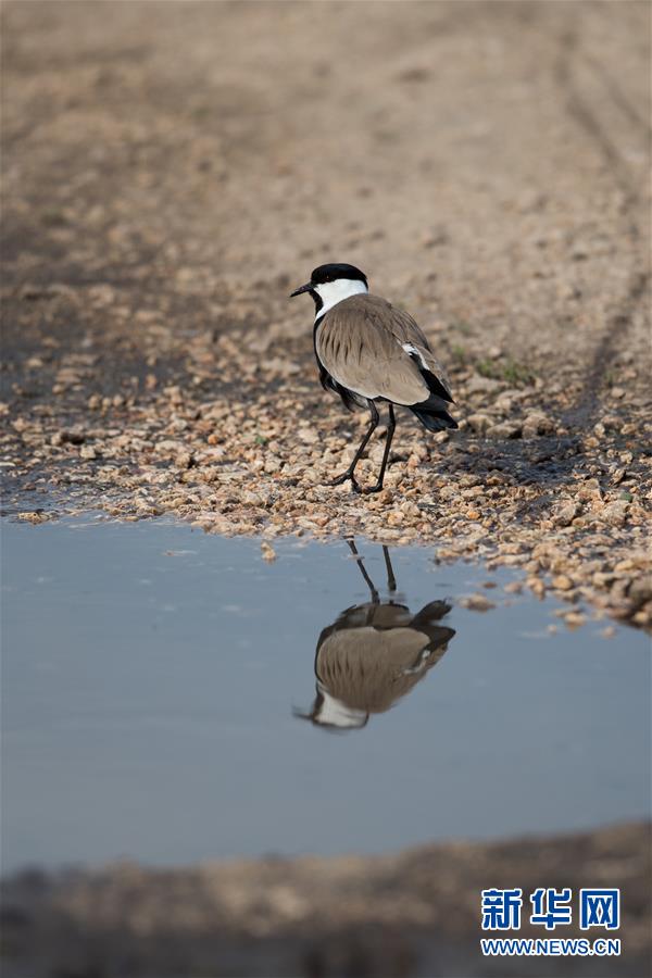 3月7日,在以色列阿格蒙胡拉鳥類和自然公園,一只黑胸距翅麥雞在覓食。新華社記者郭昱攝