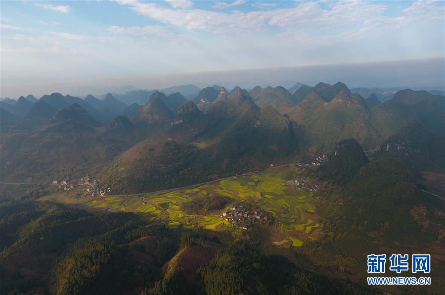廣西融安縣東起鄉(xiāng)長(zhǎng)豐村的田園春色(3月10日無人機(jī)拍攝)。 近日,隨著氣溫持續(xù)回升,廣西融安縣境內(nèi)的油菜花開放,春意盎然。 新華社記者 黃孝邦 攝