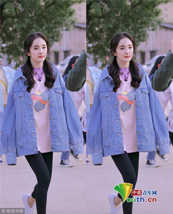 2019年3月12日,湖南長沙,楊冪錄制某綜藝節(jié)目路透曝光。她扎著雙馬尾甜美可愛似少女,穿oversized的牛仔外套和寬大T恤,戴著防曬的護袖,身材十分纖細(xì)苗條。錄制期間,楊冪氣質(zhì)明艷靈動活潑,元氣滿滿青春感爆棚。