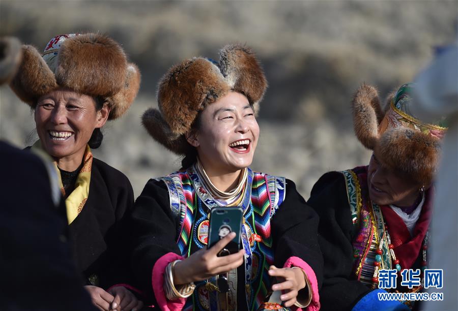3月16日,山南市乃東區(qū)門中崗村村民在開耕儀式上。 當(dāng)日,西藏各地男女老幼身著節(jié)日盛裝,駕著一輛輛由彩旗、花朵裝扮一新的拖拉機(jī),涌向待墾的農(nóng)田,載歌載舞迎來一年一度的開耕儀式。 新華社記者 覺果 攝