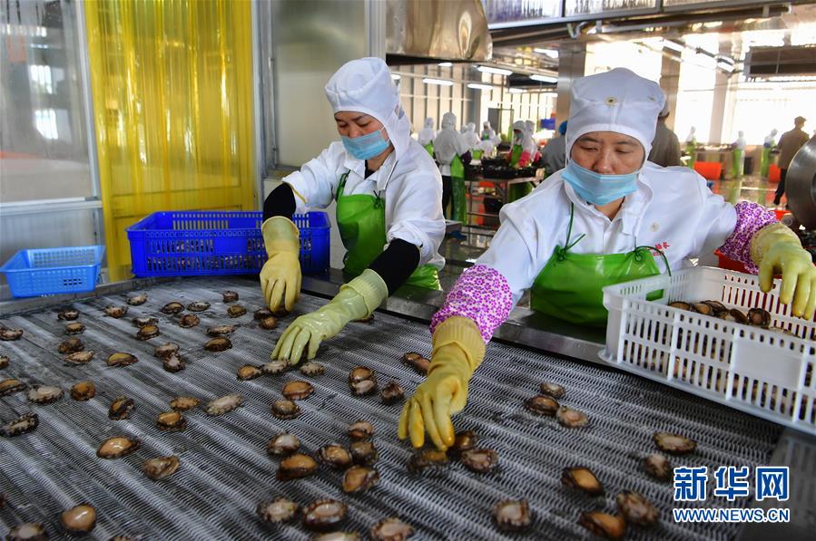 4月18日,工人在連江縣筱埕鎮(zhèn)一家鮑魚出口加工企業(yè)加工鮑魚。