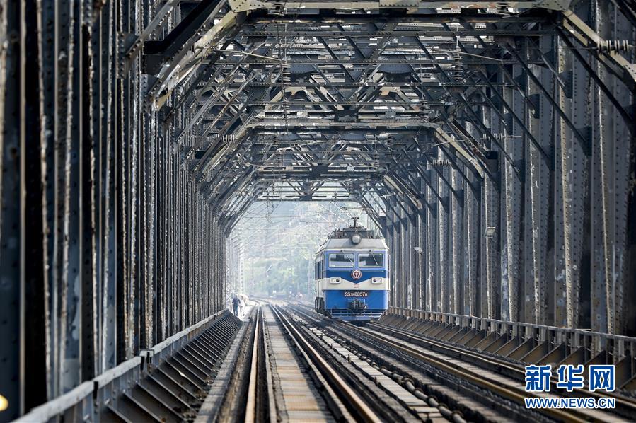中國鐵路成都局有限公司重慶工務段的巡檢班組在白沙沱長江大橋上進行巡檢作業(yè)(4月23日攝)。 4月23日下午5點40分,隨著重慶白沙沱長江大橋通行的最后一列客運列車順利通過,這座“服役”了59年的重慶首座長江大橋進入“退役”倒計時。4月24日后,所有列車將改線經(jīng)距白沙沱長江大橋約100米的新白沙沱長江特大橋通行,新橋“接力”老橋,運輸能力將得到大幅提升。 白沙沱長江大橋于1958年開工,1960年通過首趟列車,是繼武漢長江大橋之后的第二座長江大橋。 新華社記者 劉潺 攝