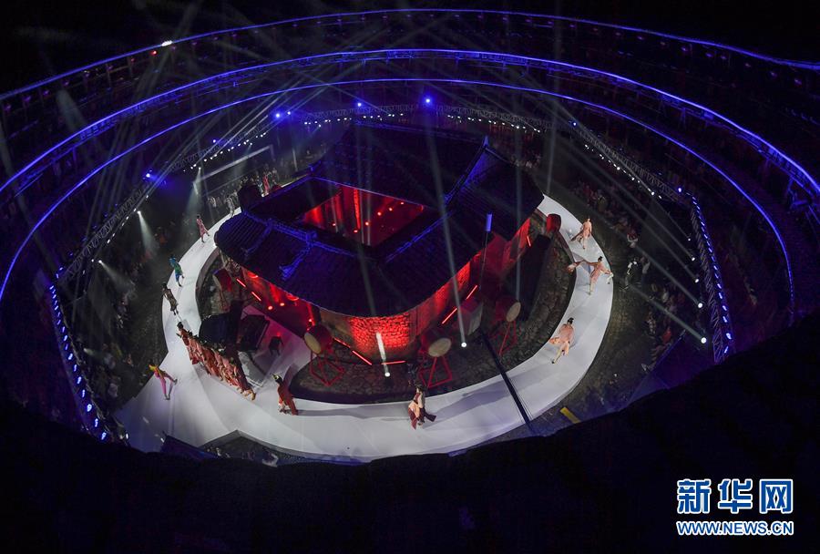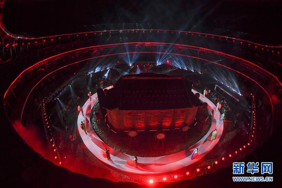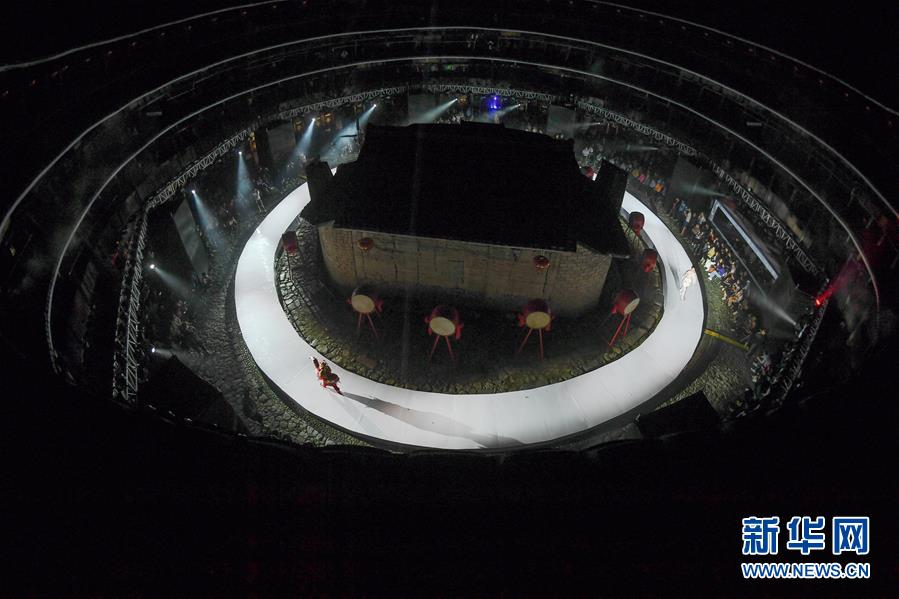 4月27日,模特在位于福建省南靖縣的土樓裕昌樓展示服飾。 當日,土樓光語國際時尚大秀在福建省南靖縣的土樓裕昌樓內(nèi)舉行。這場融匯文化、時尚與旅游元素的大秀,通過傳統(tǒng)與時尚的有機融合,展現(xiàn)南靖土樓及文化的魅力和風采。 新華社記者魏培全攝