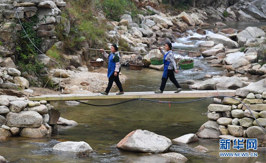 在黔桂烏英苗寨,村民勞作歸來(3月26日攝)。 新華社記者 黃孝邦 攝