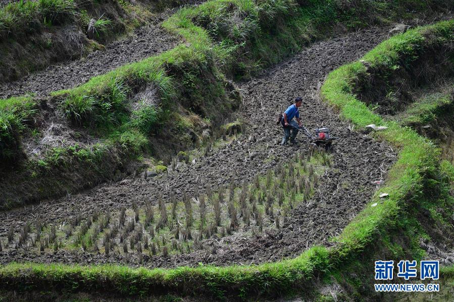 在黔桂烏英苗寨,村民在田間勞作(4月26日攝)。 新華社記者 黃孝邦 攝