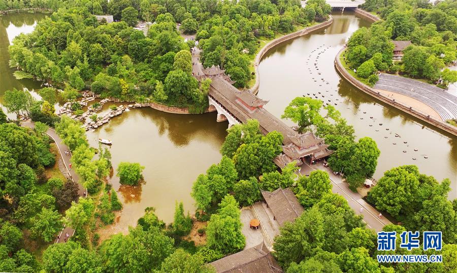 這是5月1日無(wú)人機(jī)拍攝的重慶璧山觀音塘濕地公園景象。
