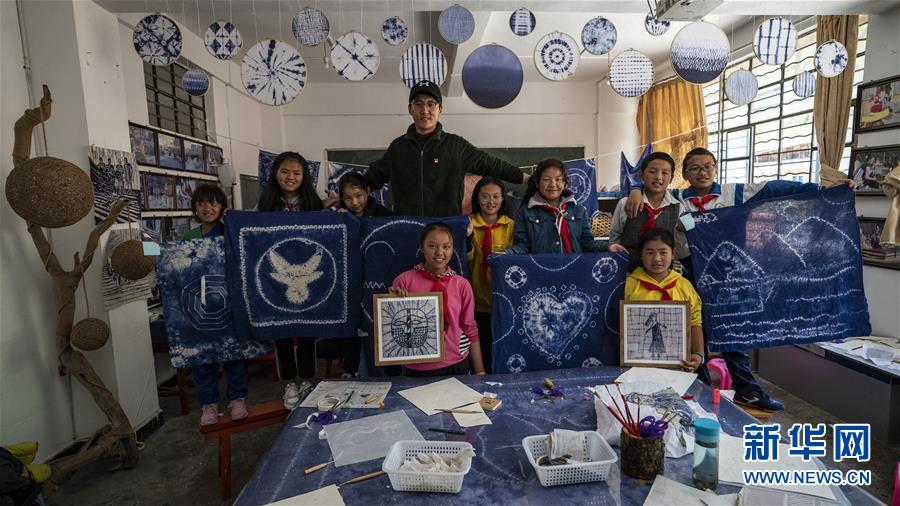 來(lái)自云南大學(xué)藝術(shù)學(xué)院的學(xué)生馬國(guó)賢(后排左四)在獨(dú)龍江中心學(xué)校支教,他利用課余時(shí)間教孩子們用扎染和蠟染的方法展現(xiàn)各自心目中的家鄉(xiāng)(4月25日攝)。 70年,在人類(lèi)歷史長(zhǎng)河中不過(guò)彈指一瞬。但對(duì)獨(dú)龍族同胞來(lái)說(shuō),新中國(guó)的70年,他們仿佛進(jìn)入了時(shí)空穿梭隧道,滄桑巨變,千古未有。 他們告別苦難,迎來(lái)陽(yáng)光。他們告別封閉,走向開(kāi)放。他們告別原始落后,擁抱現(xiàn)代文明。最近,他們宣告整族脫貧,實(shí)現(xiàn)“千年一躍”。 新華社記者 江文耀 攝