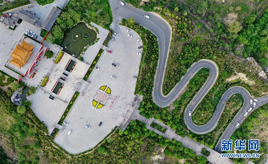這是5月2日拍攝的盤(pán)山風(fēng)景名勝區(qū)正門(mén)景觀(guān)(無(wú)人機(jī)拍攝)。新華社記者 岳月偉 攝