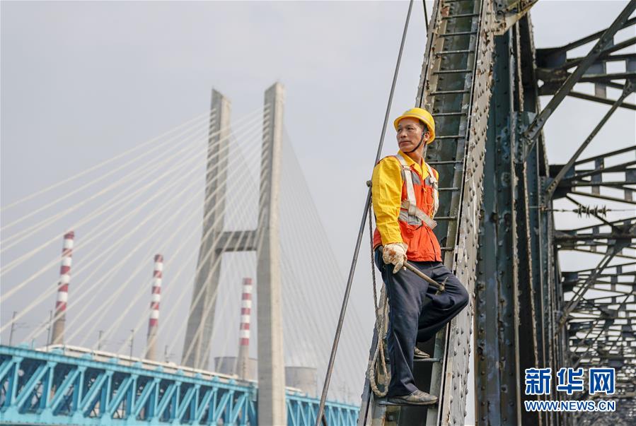 中國(guó)鐵路成都局有限公司重慶工務(wù)段53歲的橋隧工唐金華在白沙沱長(zhǎng)江大橋的作業(yè)點(diǎn)上望著新白沙沱長(zhǎng)江特大橋(4月23日攝)。 4月23日下午5點(diǎn)40分,隨著重慶白沙沱長(zhǎng)江大橋通行的最后一列客運(yùn)列車順利通過,這座“服役”了59年的重慶首座長(zhǎng)江大橋進(jìn)入“退役”倒計(jì)時(shí)。4月24日后,所有列車將改線經(jīng)距白沙沱長(zhǎng)江大橋約100米的新白沙沱長(zhǎng)江特大橋通行,新橋“接力”老橋,運(yùn)輸能力將得到大幅提升。 白沙沱長(zhǎng)江大橋于1958年開工,1960年通過首趟列車,是繼武漢長(zhǎng)江大橋之后的第二座長(zhǎng)江大橋。 新華社記者 劉潺 攝