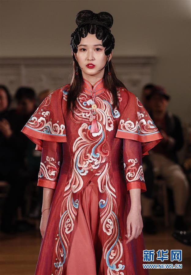 5月8日,一名模特在英國倫敦走秀。 由浙江省文化和旅游廳舉辦的浙江傳統(tǒng)工藝創(chuàng)新展8日在倫敦開幕。為期4天的展覽是第五屆倫敦手工藝周的重要活動(dòng)之一。 新華社記者 韓巖 攝