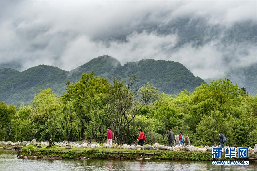 游客在神農(nóng)架國(guó)家公園大九湖游覽(2018年5月18日攝)。 新華社記者 杜華舉 攝