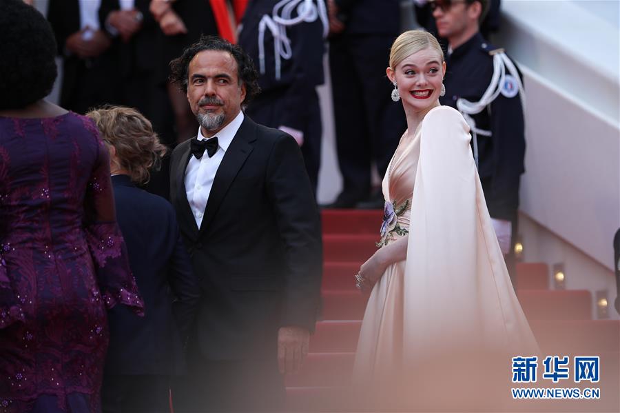 5月14日,在法國南部城市戛納,戛納電影節(jié)主競賽單元評委墨西哥導(dǎo)演亞歷杭德羅·伊尼亞里圖(左)和美國演員埃勒·范寧亮相開幕式紅毯。 5月14日,第72屆戛納電影節(jié)在戛納開幕。本屆電影節(jié)將持續(xù)至5月25日。 新華社記者 張鋮 攝