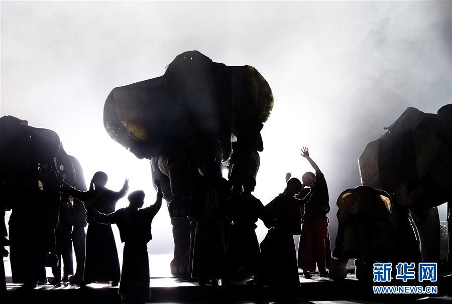 5月15日在上海美琪大戲院拍攝的新版大型人偶舞臺(tái)劇《最后一頭戰(zhàn)象》劇照。 當(dāng)日,作為第12屆中國(guó)藝術(shù)節(jié)的參演劇目,大型人偶舞臺(tái)劇《最后一頭戰(zhàn)象》在經(jīng)過4次硬件技術(shù)升級(jí)和故事修改后亮相上海美琪大戲院。 新華社記者 任瓏 攝