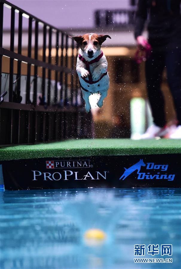 5月19日,在德國多特蒙德舉行的寵物展上,一只杰克羅素梗參加跳水比賽。 為期三天的德國多特蒙德“狗和貓”寵物展19日落幕。寵物展期間,人們帶著自己的“萌寵”來到會(huì)場(chǎng),參與寵物跳水、舞蹈、選美等趣味比賽,并與其他寵物愛好者及展商交流互動(dòng)。 新華社記者逯陽攝