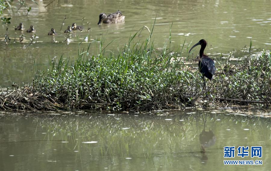 5月21日,一群野鴨從棲息在漢江濕地公園里的一只彩鹮身邊游過。 近日,國家二級(jí)保護(hù)動(dòng)物彩鹮現(xiàn)身陜西省漢中市漢江濕地公園濂水河與漢江交匯處。 據(jù)陜西師范大學(xué)生命科學(xué)院教授于曉平介紹,彩鹮在世界上的分布比朱鹮還要少,這幾年在云南發(fā)現(xiàn)得多一些,這3只彩鹮現(xiàn)身漢江濂水河畔,是陜西首次發(fā)現(xiàn)彩鹮蹤跡。 據(jù)了解,彩鹮是國家二級(jí)保護(hù)動(dòng)物,屬鵜形目鹮科,體羽大部為青銅栗色,是珍稀鳥類朱鹮的“近親”,體型比朱鹮略小。 新華社記者陶明攝