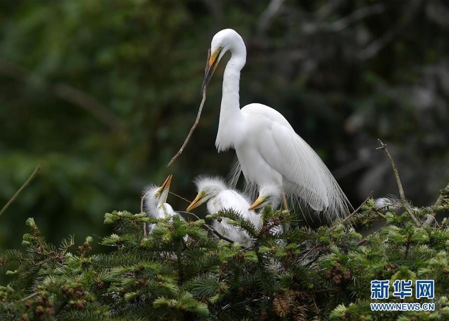 在江西省南昌市新建區(qū)象山森林公園內(nèi),白鷺和自己的雛鳥在一起(5月21日攝)。 近日,在江西省南昌市新建區(qū)象山森林公園內(nèi),已安家筑巢的大批鷺鳥陸續(xù)孵化出了后代。象山森林公園有著“鷺鳥王國”的美譽,生態(tài)環(huán)境良好,每年都會吸引白鷺、蒼鷺、夜鷺等鷺鳥飛抵棲息和繁衍后代。 新華社記者 彭昭之 攝