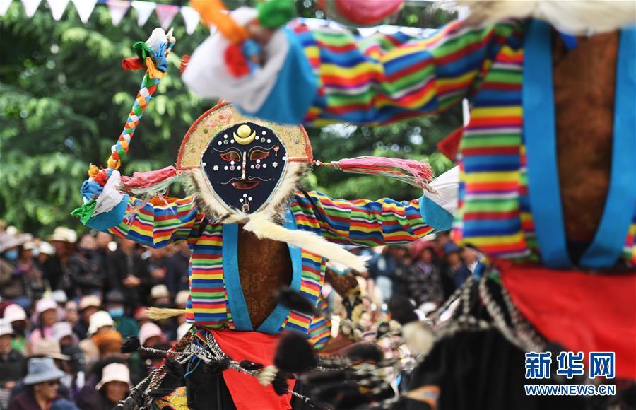 5月18日,藏戲藝人在拉薩市宗角祿康公園表演。 當日,藏戲演出季活動在西藏拉薩啟幕。即日起至7月底的每個星期六,民間藏戲藝人將在拉薩宗角祿康公園進行公益表演。 新華社記者 普布扎西 攝