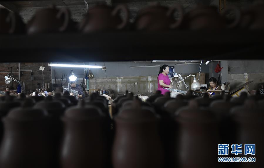 5月21日,郭卉(中)在工作室的生產(chǎn)車間指導員工制作坭興陶制品。 廣西欽州坭興陶被譽為中國四大名陶之一,至今已有1000多年的傳承歷史。生于廣西欽州的“80后”青年郭卉是欽州坭興陶燒制技藝代表性傳承人。2006年大學畢業(yè)后回鄉(xiāng)創(chuàng)業(yè),郭卉投身坭興陶制作行業(yè),她不僅悉心學習本地坭興陶的燒制技藝,還遠赴江蘇宜興拜師學藝,將紫砂陶藝的制作技法引進到坭興陶的燒制過程中。 作為“廣西五四青年獎章”獲得者、“廣西青年創(chuàng)業(yè)明星”,郭卉通過創(chuàng)立自己的“玉陶”品牌,在技藝研發(fā)中不斷嘗試創(chuàng)新,她領銜的工作室研發(fā)的不少工藝項目先后獲得多項專利。如今,郭卉的工作室不僅成為部分當?shù)貙W校的教學實踐基地,還面向周邊的貧困戶開展免費培訓,為他們提供就業(yè)增收的機會,該工作室先后獲評“廣西五一巾幗標兵崗”“欽州市巾幗脫貧示范基地”。 郭卉說,自己深愛著家鄉(xiāng)的坭興陶制作技藝,相信未來會有更多的年輕人參與其中,使傳承千年的古老技藝不斷發(fā)揚光大。 新華社記者 魯鵬 攝