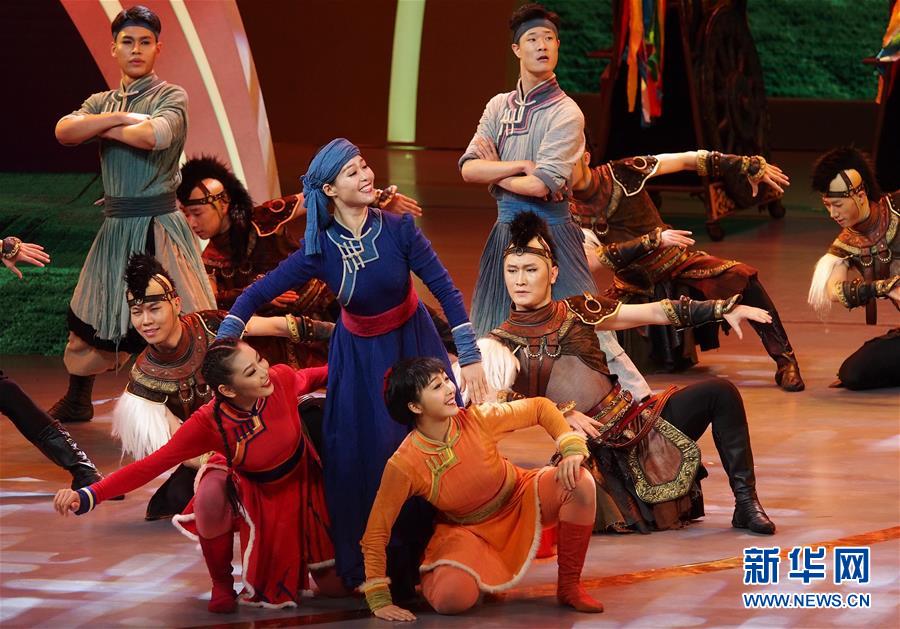 6月2日,內(nèi)蒙古藝術(shù)學(xué)院演員在第十二屆中國藝術(shù)節(jié)閉幕式上匯報演出獲得文華大獎的舞劇《草原英雄小姐妹》選段。  新華社記者 任瓏 攝