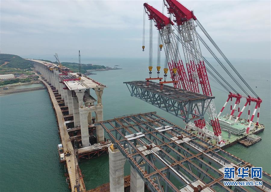 福平鐵路平潭海峽公鐵兩用大橋元洪航道橋主橋正在合龍(6月5日攝)。 新華社記者 林善傳 攝