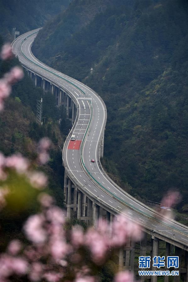 貴州思劍高速公路劍河縣岑松鎮(zhèn)段的春季景觀(3月23日攝)。陽(yáng)春時(shí)節(jié),貴州思(南)劍(河)高速公路劍河縣岑松附近的桃花和梨花陸續(xù)開放。 新華社記者楊文斌攝