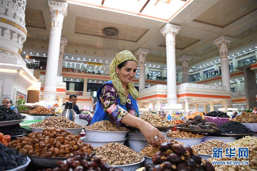 6月10日,在塔吉克斯坦首都杜尚別,一名商販?zhǔn)圪u干果。塔吉克斯坦共和國,簡稱塔吉克斯坦,是位于中亞東南部的內(nèi)陸國家。塔吉克斯坦是多民族國家,全國共有86個民族,人口約910萬。新華社記者沙達(dá)提攝