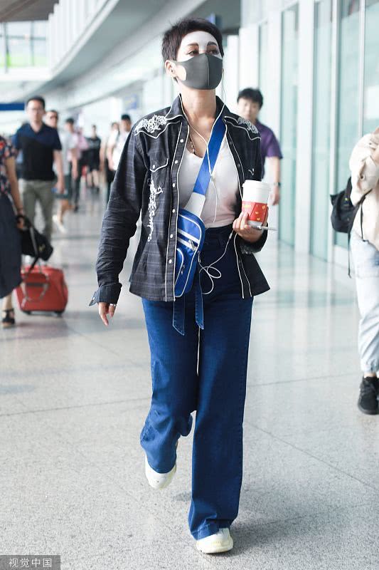 2019年6月19日,北京,寧?kù)o現(xiàn)身機(jī)場(chǎng)。她穿敷面膜亮相短發(fā)干練個(gè)性灑脫,戴口罩對(duì)鏡揮手大方任拍。