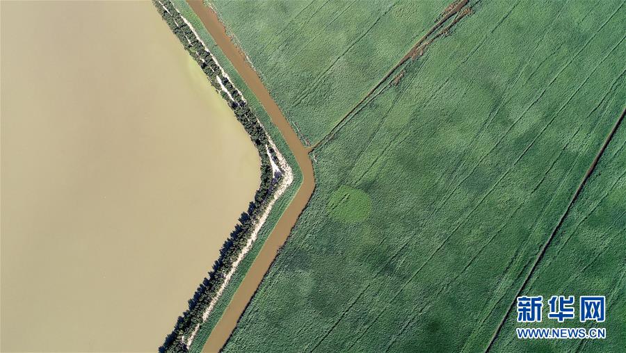 這是天津市寧河區(qū)七里海濕地局部景觀(6月22日無(wú)人機(jī)拍攝)。新華社記者 岳月偉 攝