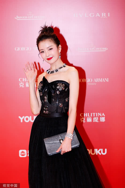 圖為2019年6月23日,第22屆上海電影節(jié)閉幕紅毯上的汪可盈。