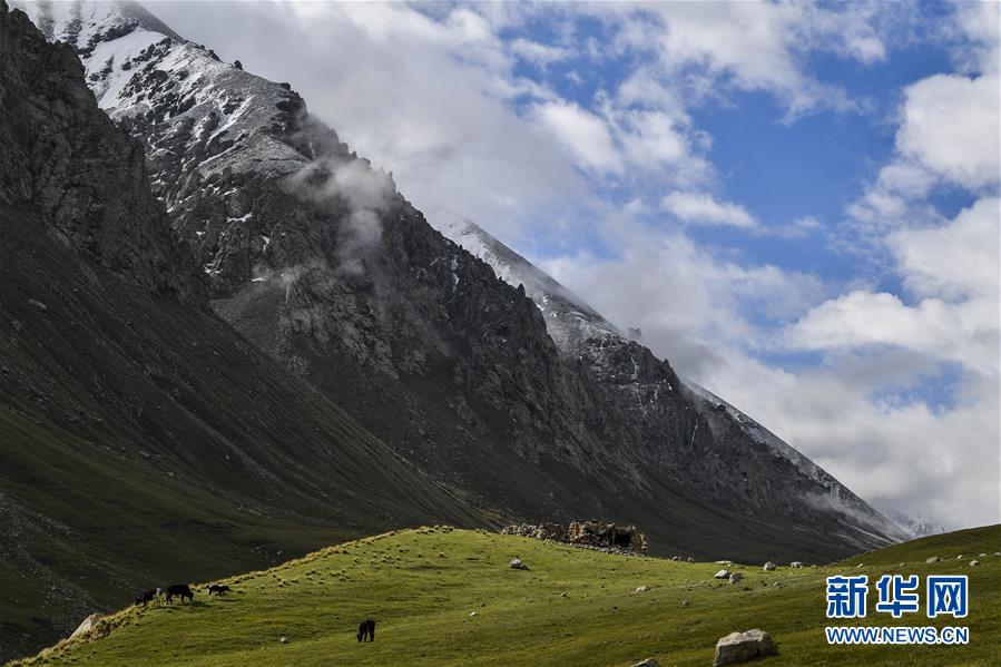 牛羊在拉依布拉克牧場覓食(6月22日攝)。新華社記者 胡虎虎 攝
