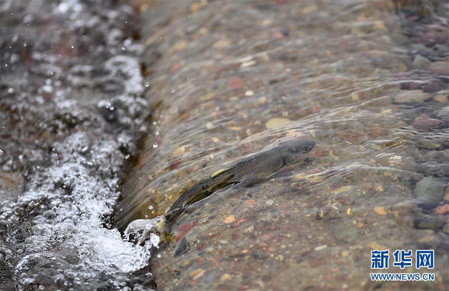 7月6日,在青海省剛察縣沙柳河里,一條湟魚在洄游。 盛夏時節(jié),在我國最大的內(nèi)陸咸水湖青海湖中,湟魚開始成群結(jié)隊沿著入湖河流逆流而上,到上游淡水河產(chǎn)卵,形成“半河清水半河魚”的奇觀。 新華社記者張宏祥攝