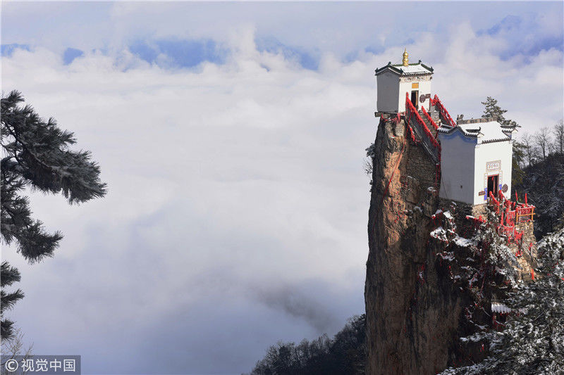 2019年3月3日,陜西商洛,位于鎮(zhèn)安縣的塔云山景區(qū)云海翻騰,宛如仙境。