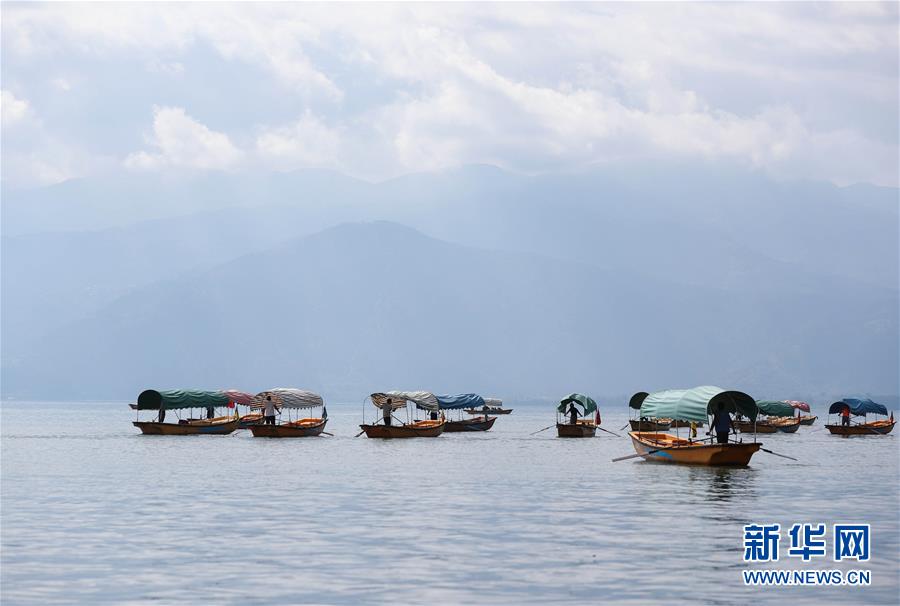 7月27日,西昌邛海的漁民乘著漁船準(zhǔn)備捕魚。