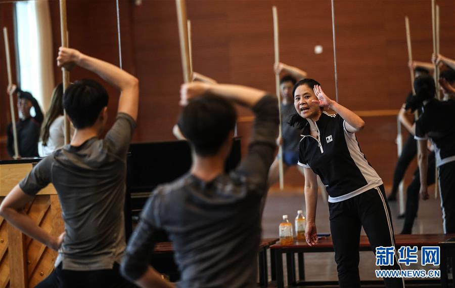 7月9日,遼寧芭蕾舞團團長曲滋嬌在指導演員進行芭蕾舞劇《花木蘭》的排練。新華社記者 潘昱龍 攝