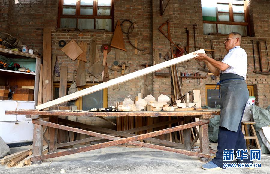 8月7日,在石家莊市井陘礦區(qū)橫西村,韓保元在測量切割好的木料。 新華社記者駱學峰攝