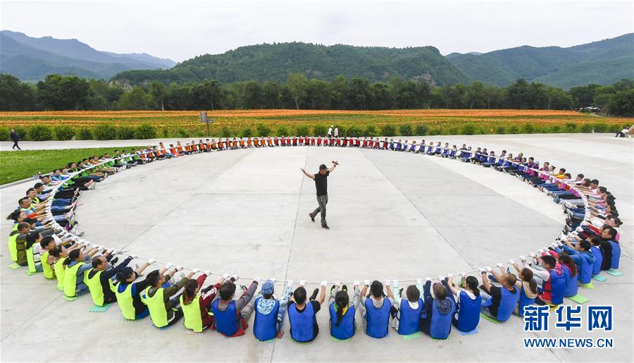 8月8日,游客在伊春市九峰山養(yǎng)心谷景區(qū)進(jìn)行集體游戲活動。 時值八月,黑龍江省伊春市林區(qū)空氣清新,涼爽宜人,吸引眾多游客。 新華社記者李曉果攝