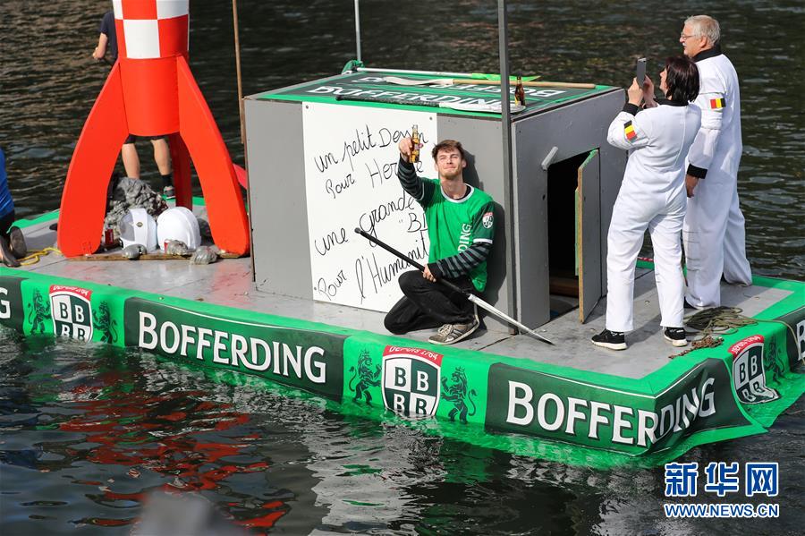 當(dāng)日,一年一度的水上狂歡活動(dòng)“浴缸劃船節(jié)”在比利時(shí)迪南舉行。該活動(dòng)要求參賽者制造的船上至少帶有一個(gè)浴缸,參賽者需完成一千米的水上巡游,最后根據(jù)設(shè)計(jì)創(chuàng)意及現(xiàn)場(chǎng)表演而非行進(jìn)速度評(píng)選出優(yōu)勝者?!霸「讋澊?jié)”始于1982年,今年的主題是"我們?cè)谠虑蚵?quot;。 新華社記者 張鋮 攝